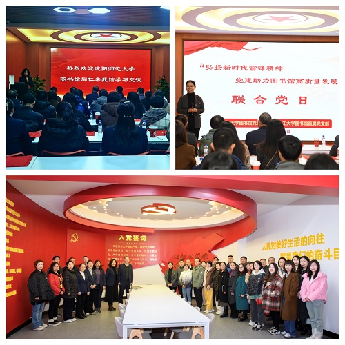 为弘扬新时代雷锋精神,传递榜样力量,进一步推动党建工作助力图书馆高质量发展,11月21日,beat365在线体育官网登录入口图书馆直属党支部与沈阳师范大学图书馆党总支联合开展“弘扬新时代雷锋精神,党建助力图书馆高质量发展”主题党日活动。本次活动在beat365在线体育官网登录入口新时代雷锋精神育人中心开展,两馆全体党员参加了活动。