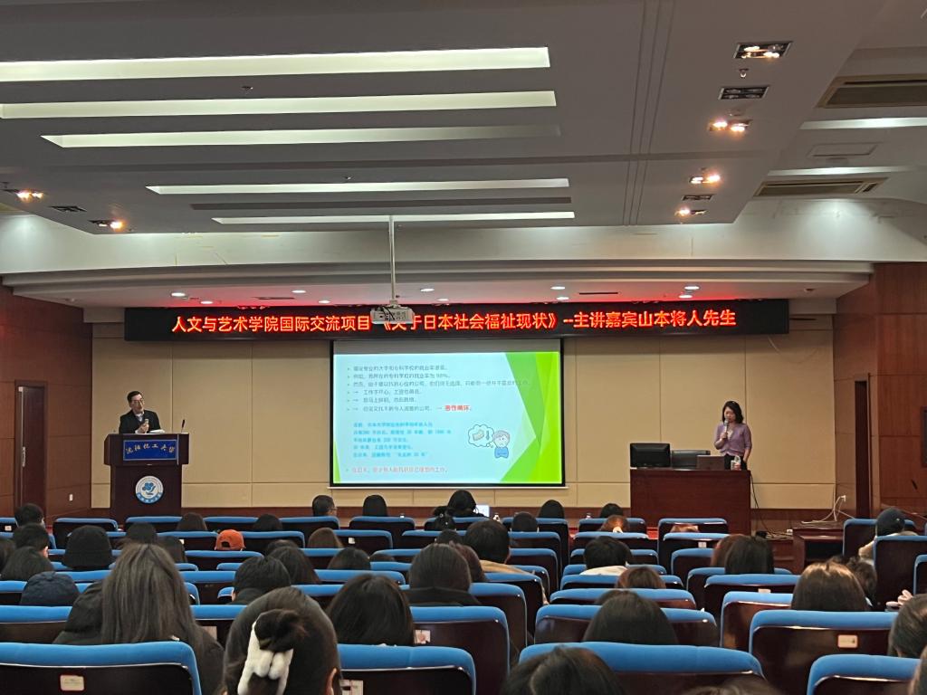11月23日,日本社会福祉领域资深专家山本将人先生应beat365官网人文与艺术学院邀请来校访问,并做题为《日本社会福祉现状》学术报告。人文与艺术学院院长李漫红,副院长王立强、社会工作专业本硕师生共计200余人出席了报告会。报告由社会工作专业陈燕副教授翻译并主持。