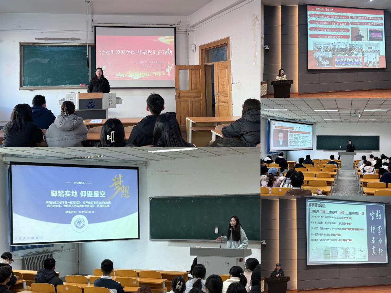 保研至大连理工大学的本科生、第二党支部李雯珊同学为上晚自习的大一新生进行5场学业指导讲座,根据不同课程提出不同的学习方法。对于无机化学和高等数学课程,重点在理解最基本概念,同时做好每节课和每个章节的归纳总结;对于大学外语课程,则要着重记忆单词、语法,平时多练习口语并举一反三。学生党员们纷纷走进低年级班级,开展“榜样有‘化’说”活动,根据自身经验和新生即将面对的问题进行宣讲答疑,为做好期末考试考前复习和大学生职业生涯规划打好基础。