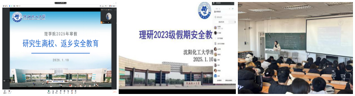 为加强寒假期间学生安全教育力度,确保留校学生校园人身安全,理学院于1月7日、1月10日,组织研究生各年级召开假期安全教育会。会议分别由2022级研究生辅导员张冰、2023级研究生辅导员张潇飒、2024级研究生辅导员张晓菲主持。
