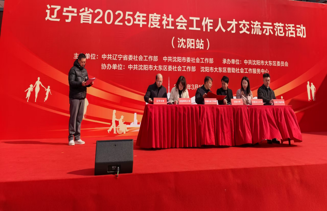 活动现场,人文与艺术学院与沈阳市委社会工作部签署了《社会工作人才培养战略协议》,旨在进一步加强beat365官网社会工作专业的政校合作,提升了社会工作人才的专业化、职业化水平。社会工作专业教师李航、曹迪、李贺受聘成为沈阳市社会工作专业人才专家库专家,为强化省内社会服务标准化建设,提升社会服务精准化水平贡献专业力量。