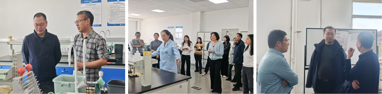 党员教师们对无机化学实验室进行细致参观。与会教师围绕实验课程体系设计、实验室制度管理、实验台操作环境、实验器材准备与摆放四个方面展开了深入交流。围绕本科教育教学审核评估,双方教师将目光聚焦于实验教学规范化,剖析学科间实验需求和教学特色的异同,研讨实验课程设置,优化整合课程体系,完善标准化实验教学流程,共同推进实验室项目建设。