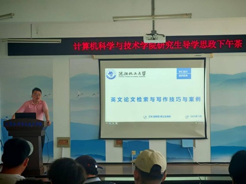 为切实加强研究生导学思政育人功能,构建导师与辅导员协同育人机制,5月16日,计算机科学与技术学院在致本楼E座517 报告厅举办“导学思政下午茶”活动。本次活动以“启智焙茗 思政领航”为主题,邀请研究生导师王旭副教授主讲,学院党委副书记兼研究生辅导员张丽主持,2023 级、2024 级研究生共同参与,通过学术分享与师生交流,推动“三全育人”工作走深走实。