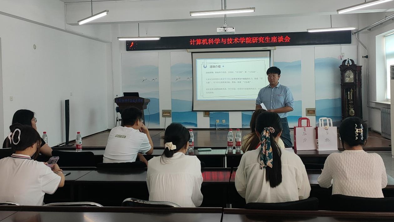 在研究生的学习生活中,压力似乎如影随形。学业的繁重、生活的琐碎以及对未来职业的迷茫,都让研究生们承受着巨大的心理负担。为了帮助研究生们缓解压力,轻装前行,计算机科学与技术学院于5月29日在致本楼E区517报告厅开展第三届学术文化节系列活动之研究生“导学思政下午茶”活动。活动由研究生辅导员李鹏飞主持活动,2024级、2023级研究生参加,此次活动主要包含研究生压力探讨、互动游戏、分享减压技巧、同学们自由交流四个部分。