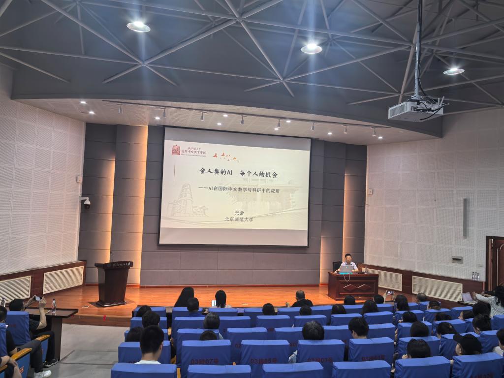6月30日,北京师范大学国际中文教育学院张会教授应邀在beat365官网碧帆楼304座作了题为《全人类的AI,每个人的机会——AI应用于教学科研的尝试》学术报告。本次报告会由科学技术研究院主办,国际教育学院承办,国际教育学院院长王春雨主持,beat365官网部分师生聆听了本次报告。