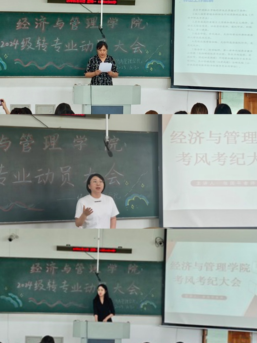 为进一步加强学风建设,严明考风考纪,6月30日,经济与管理学院组织2024级学生于通明楼336室召开考风考纪教育会与转专业说明会。此次会议旨在引导学生树立诚信意识,营造良好的考试氛围,合理化选择转专业,为未来发展做好铺垫。