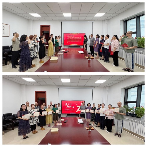 党支部精心筹备,为全体党员举行了党员政治生日卡颁发仪式。这些小小的卡片,不仅是一份特殊的纪念,更是党组织与党员之间情感联结的纽带,时刻提醒着党员们牢记自己的政治身份。随后,全体党员整齐列队,庄严地举起右拳,重温入党誓词。“我志愿加入中国共产党……”铿锵有力的誓言在会议室中久久回荡,一字一句都饱含着党员们对党的无限忠诚,以及对所从事事业的炽热情怀。在这庄严的时刻,大家仿佛回到了入党时的那一天,再次坚定了自己的理想信念,牢记为党和人民奋斗的初心使命。