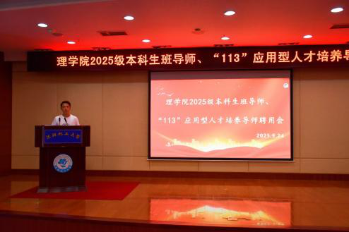 9月24日,理学院于图书馆五楼学术报告厅召开2025级本科生班导师、“113”应用型人才培养导师聘任大会。会议由理学院分团委书记张卓夫主持,理学院全体班子成员、学院受聘教师及2025级本科生参加会议。