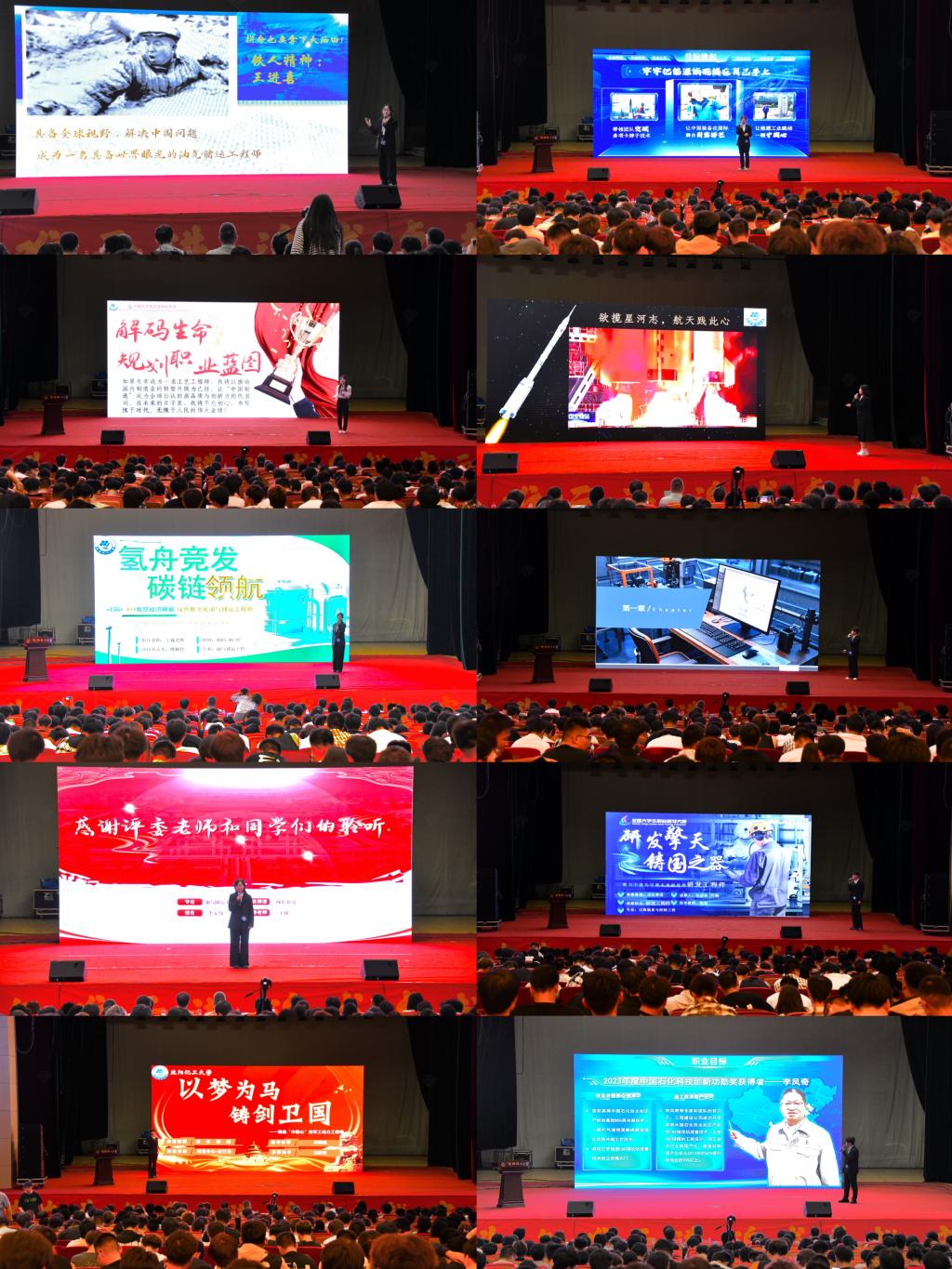 自大赛启动以来,各班级积极响应,上千名学子热情参与,历经班赛、年级赛、学院赛的激烈角逐,11位选手凭借自身的成长路径与职业构想脱颖而出,站上决赛舞台。他们将个人理想融入国家发展大局,立足专业特色,围绕航空航天、油气储运、智能制造、绿色能源、兵器工业等多个行业领域,从职业目标、实践行动、评估调整等方面进行了全方位展示。11位选手胸怀“国之大者”,在不懈奋斗中极致绽放对未来职业的憧憬与规划,展现了我院青年学子朝气蓬勃、开拓进取的精神风貌和心系民族命运、国家发展、人民福祉的责任担当。在问答环节中,评委们以经验为星、建议为罗盘,校准青春航向,为这场青春与时代的对话,点燃了使命之光,照亮了前行之路。经过激烈角逐,大赛最终评选出金奖1名、银奖2名、铜奖3名及优秀奖5名。