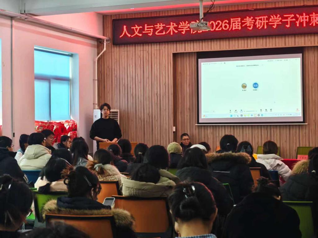 为切实帮助2026届考研学子坚定备考信念、优化冲刺策略,缓解备考压力,12月15日,人文与艺术学院在学院报告厅隆重举办“乘骐骥以驰骋,揽星月而题名”2026届考研冲刺动员大会。学院党委书记周克刚、院长李漫红、党委副书记于丰刚、副院长王立强、副院长陈英杰出席大会,22级本科生辅导员孙重阳主持会议,全体2026届考研学子参会。
