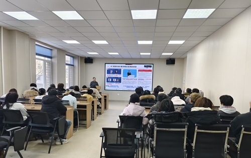 为深入贯彻教育数字化战略行动,积极响应人工智能赋能高等教育的发展号召,1月21日,环境与安全工程学院在梦溪楼114室举办人工智能赋能学科专业建设培训研讨会,特邀东北大学材料科学与工程学院金剑锋副教授作专题报告。环境与安全工程学院院长朱明昌,副院长刘长风、刘丹丹及全体专任教师参加研讨会,共同探讨AI技术与学科建设、教学改革、科研创新深度融合的实践路径。会议由刘丹丹主持。
