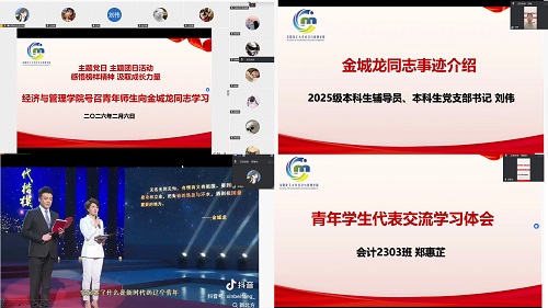 为深入学习榜样事迹,传承榜样精神,响应学校《关于号召全校青年深入开展向金城龙同志学习的倡议》号召,2月6日,经济与管理学院举办一次特殊的主题党日和团日活动。学院党委副书记关婷、党员师生代表、青年师生代表及辅导员代表参会,共同感悟榜样的初心使命与责任担当。
