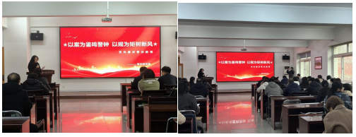 纪委委员郭晓娇以学校和其他高校典型案例为依托,开展“以案为鉴鸣警钟,以规为矩树新风”党风廉政警示教育。通过剖析案例,强化教职工廉洁意识,警示众人时刻警醒,严守纪律红线,共筑教育系统清廉形象。