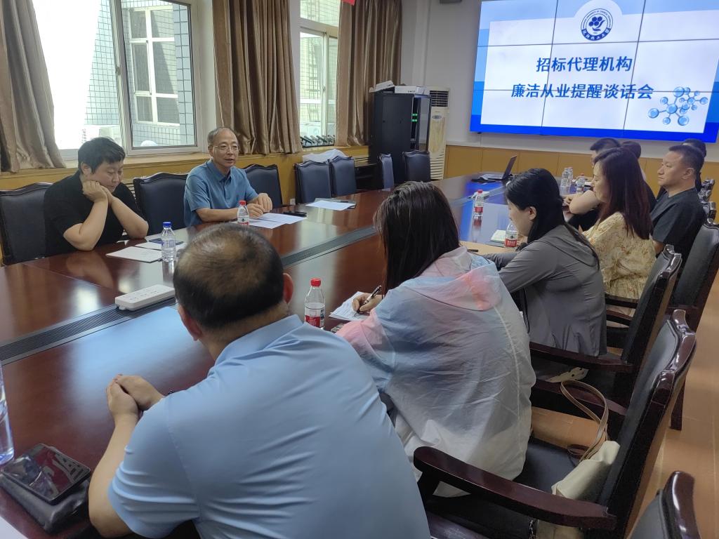 为进一步规范学校招标采购工作,强化招标代理机构廉洁从业意识,6月20日上午,学校召开了2025年招标代理机构廉洁从业提醒谈话会。副校长杨学印、招标采购工作办公室主任孙静及6家代理机构代表参会。