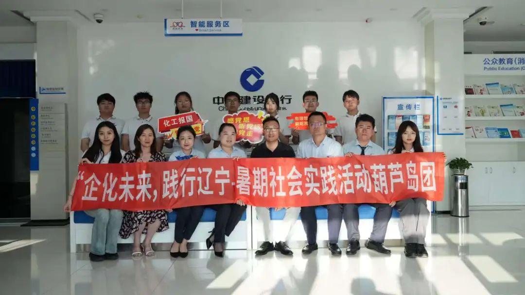 实践团受优秀校友、建设银行葫芦岛分行石化支行行长李智慧邀请,实地参观考察建设银行葫芦岛分行石化支行。李智慧行长亲切接待了化大师生一行,考察中她与团队进行了深度的沟通,对同学们的就业问题提出了建设性的意见,鼓励大家珍惜大学时光,努力学习,积极投身校园和社会实践活动,不断充实提高自己,并致以诚挚的祝福与殷切的期望。
