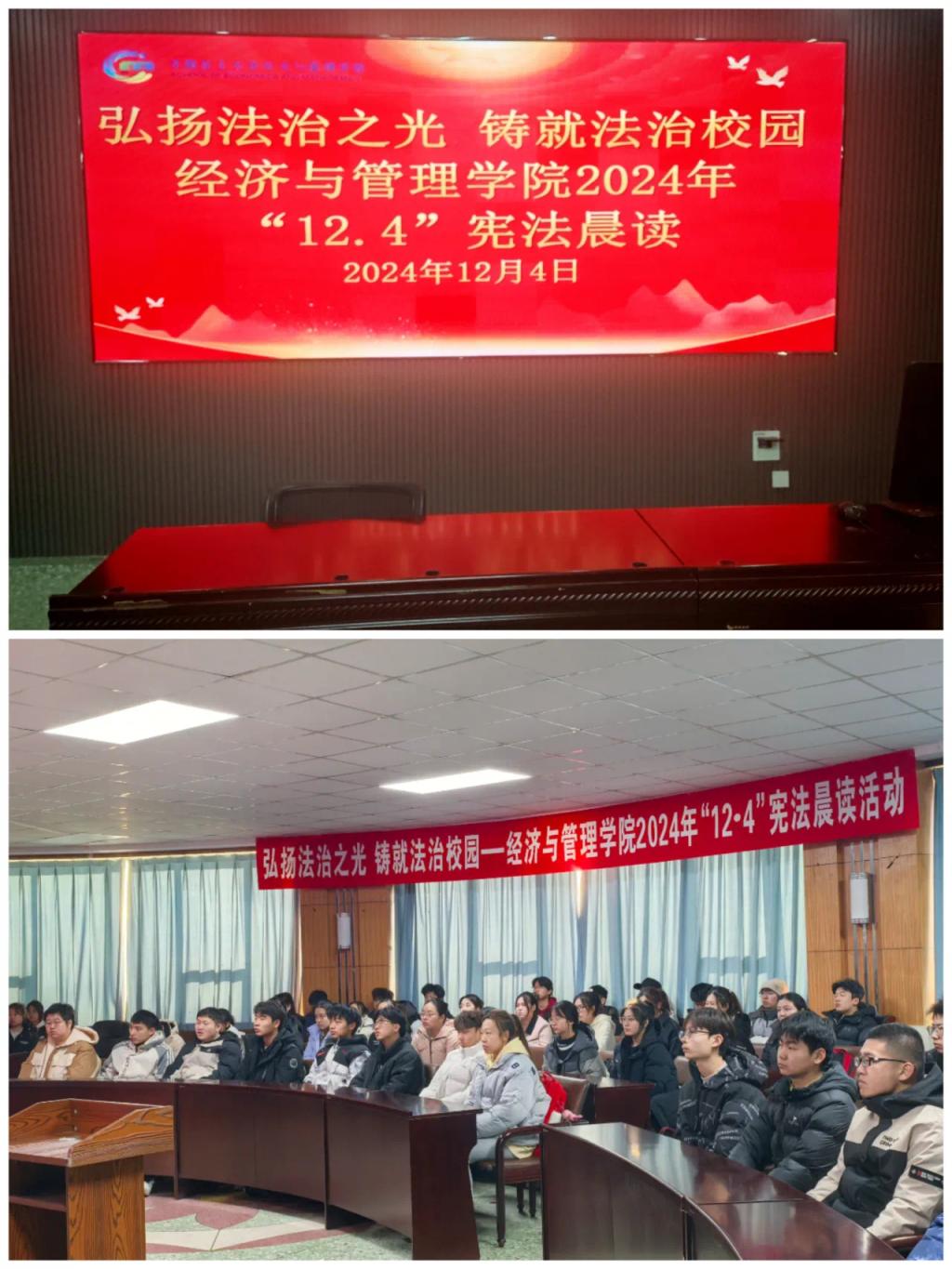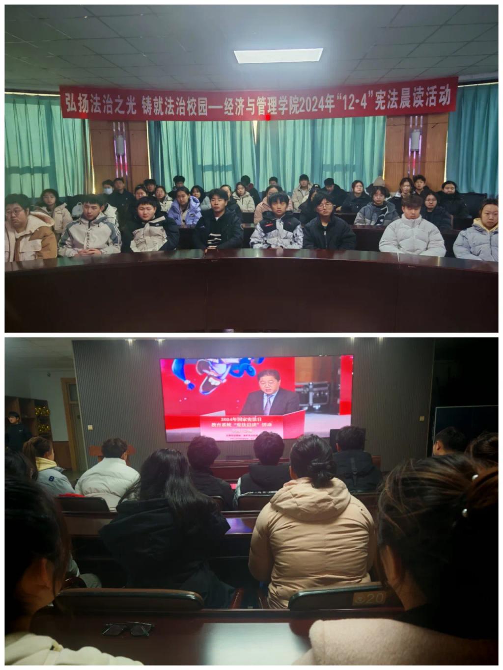为了引导学生深入学习宪法法治知识、增强宪法法治观念、树立宪法法治意识,提升法治素养,按照教育部印发的《关于开展2024年教育系统“宪法 宣传周”系列活动的通知》以及省“宪法 宣传周”有关部署要求,12月4日,经济与管理学院组织全院师生共同观看了全国教育系统“宪法晨读”直播节目,并同步参与了宪法学习环节。