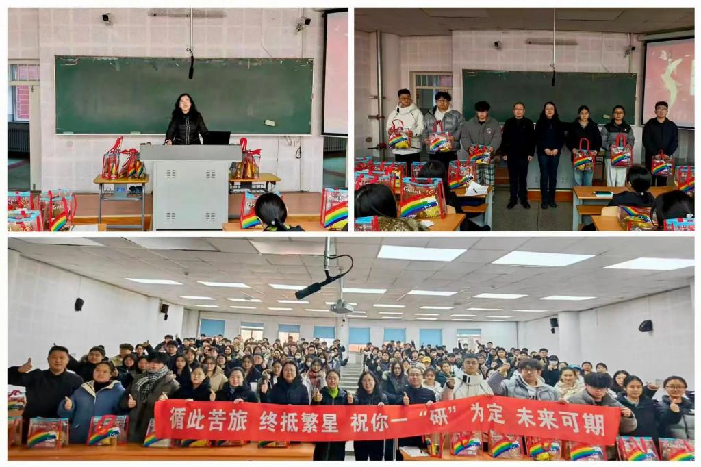 孙晓静作动员讲话。她围绕考研冲刺阶段的复习策略优化、身心状态调适、应试技巧提升等核心维度,为备考学子提供了细致入微、切实可行的指导建议,同时代表学院郑重承诺:将持续强化服务保障力度,细化各项支持举措,全程为考研学子保驾护航。