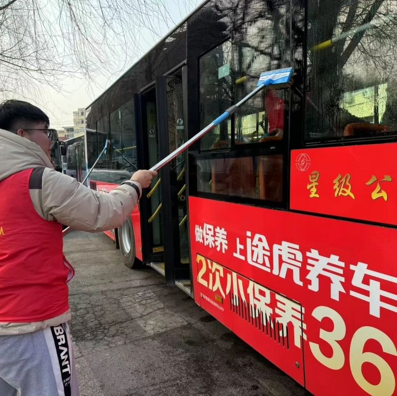 青年突击队队员们对公交车的座位和车身轮廓进行了全面清洁。此次活动,不仅为乘车居民带来便利,队员们也在实践中加深对雷锋精神的理解。