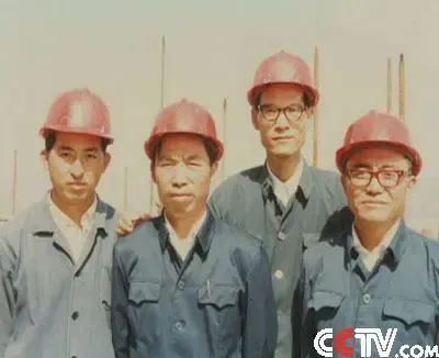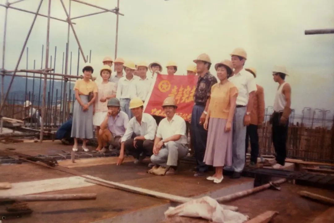 1982年,深圳国贸大厦施工青年突击队:四顶红帽子。