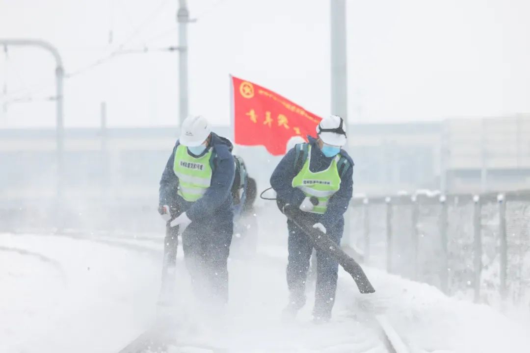2023年,中建青年突击队在郑州地铁3号线扫雪除冰作业。