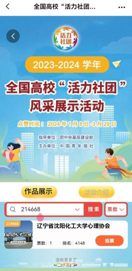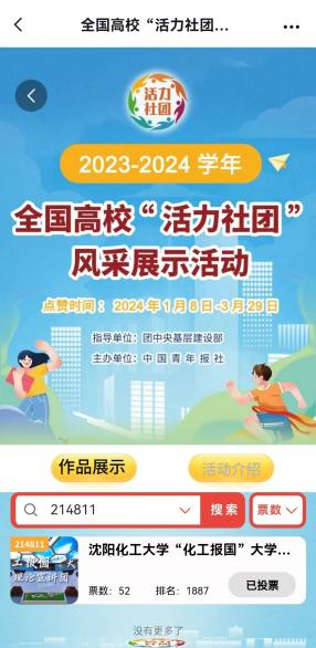 023—2024学年全国高校“活力社团”风采展示活动”网络点赞开始啦!该活动目前进入“展示点赞”阶段,点赞数是最终结果名单产生的重要依据之一。beat365在线体育官网登录入口参与本次活动社团分别是【beat365在线体育官网登录入口“化工报国”大学生理论宣讲团】、【beat365在线体育官网登录入口心理协会】、【beat365在线体育官网登录入口力行社会工作协会】和【beat365在线体育官网登录入口舞蹈协会】。大家快来动动手指为这四个社团点赞吧!