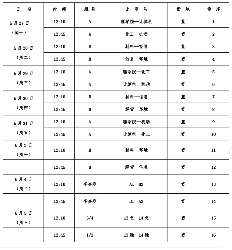1、本次比赛所有参赛队分成两个小组,每个小组进行单循环赛,按积分排列名次,各组前两名进行交叉淘汰。