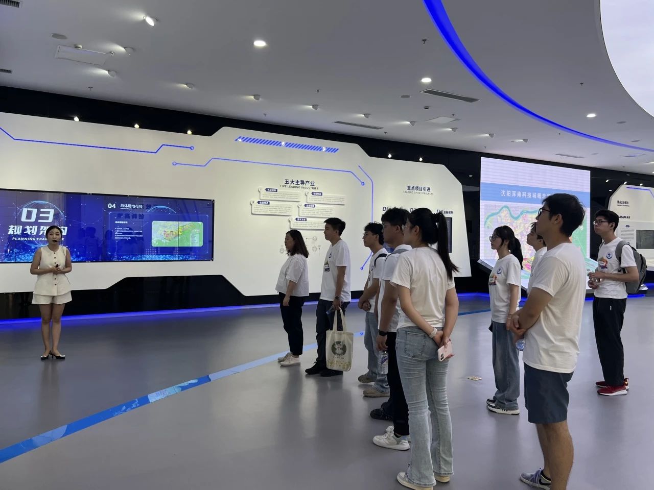 8月4日上午,实践团成员来到了浑南区(沈阳高新区)规划展示馆。规划馆作为展示浑南区乃至沈阳市未来发展规划的重要平台,以其独特的视角和丰富的展示内容,让队员们仿佛置身于一个充满无限可能的未来世界。在这里,新质生产力不再是抽象的概念,而是化作了具体而生动的图景,展现在队员们眼前。