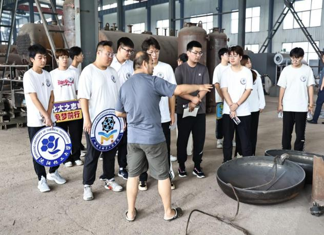 在工作人员的带领下分别对两个公司工厂的生产车间进行参观,并且将所学专业知识与实践相结合。不仅如此,在本次参观学习过程中,实践团成员还深刻感受到专业技术人才对于推动产业进步的重要意义,对“化工报国”的信念有了更加坚定的认同。