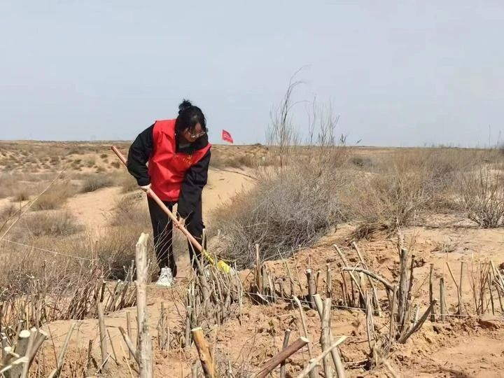 地处蒙陕宁三省区交界处的内蒙古鄂尔多斯市鄂托克前旗,是治理毛乌素沙地的主战场之一。两年前,西部计划志愿者师晶晶来到鄂托克前旗昂素镇,加入防沙治沙工作。