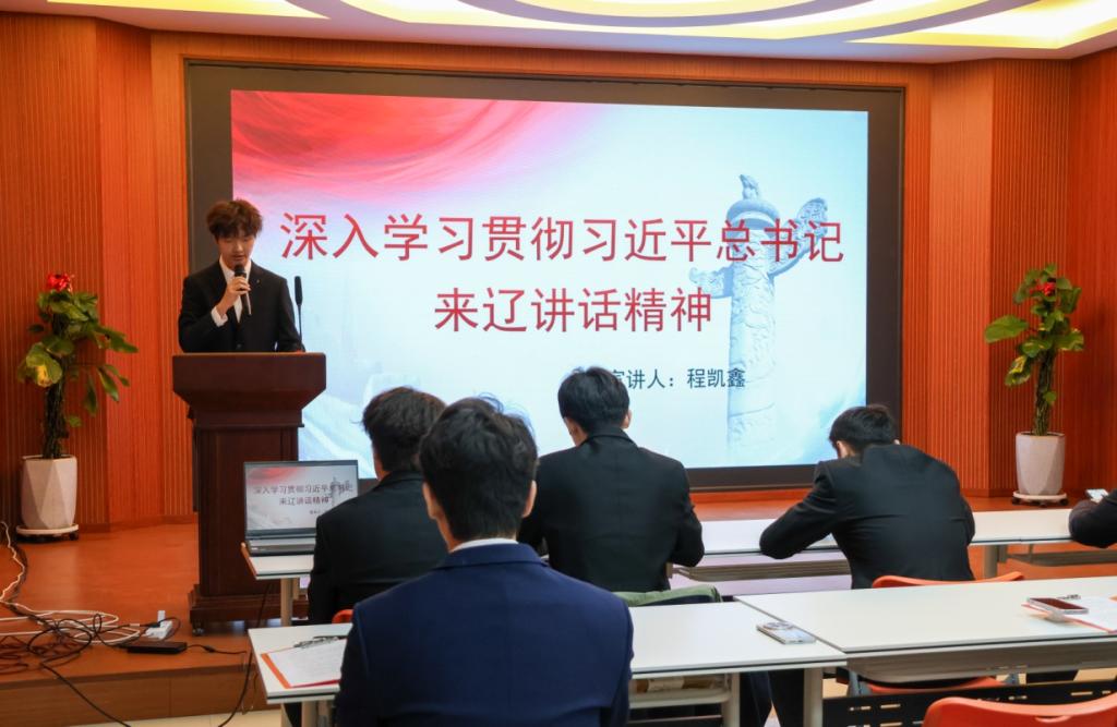 最后,宣讲团成员程凯鑫同学以“深入学习贯彻习近平总书记在辽宁考察时的重要讲话精神”为主题进行了宣讲。程凯鑫同学详细解读了习近平总书记在辽宁考察时的重要讲话精神的核心要义,并结合辽宁的实际情况,在生活中要转化为实际行动,推动辽宁全面振兴、全方位振兴。