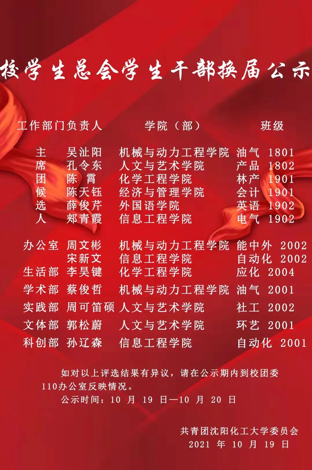 校学生总会学生干部换届公示