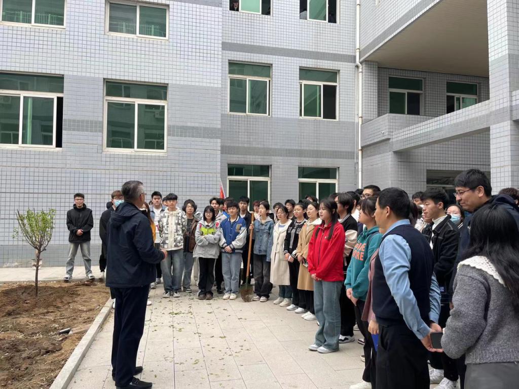 马克思主义学院党总支书记王成家就植树活动,为参与活动的团员同学上了一节生动的主题团课,使得团员同学们在劳动中感受快乐的同时,在思想根源上也得到了滋养和升华。