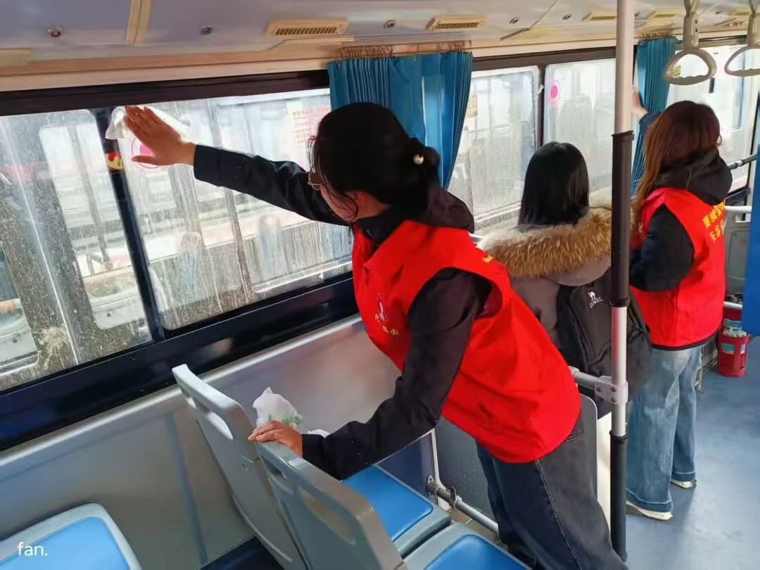 在劳动中,志愿者们相互配合、互帮互助,展现出高度的凝聚力与奉献精神。他们用双手拂去污渍,用汗水换来整洁,用实际行动为市民营造干净、舒适、文明的乘车环境,让公交成为城市中最靓丽的流动文明风景线。