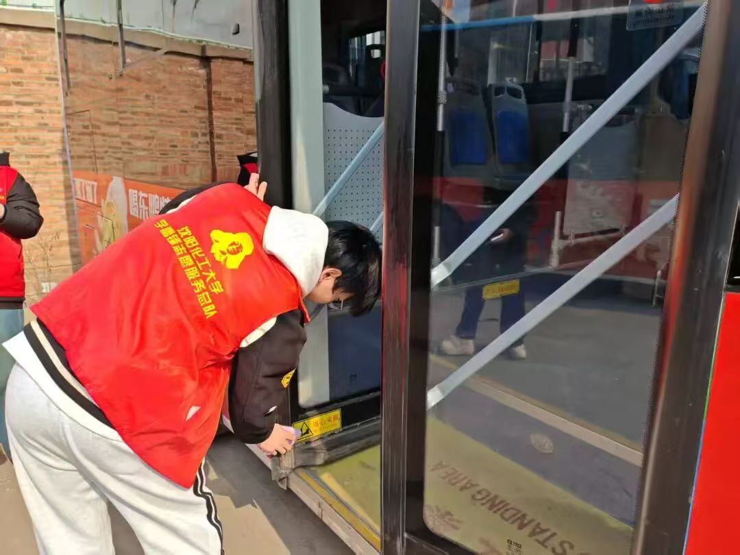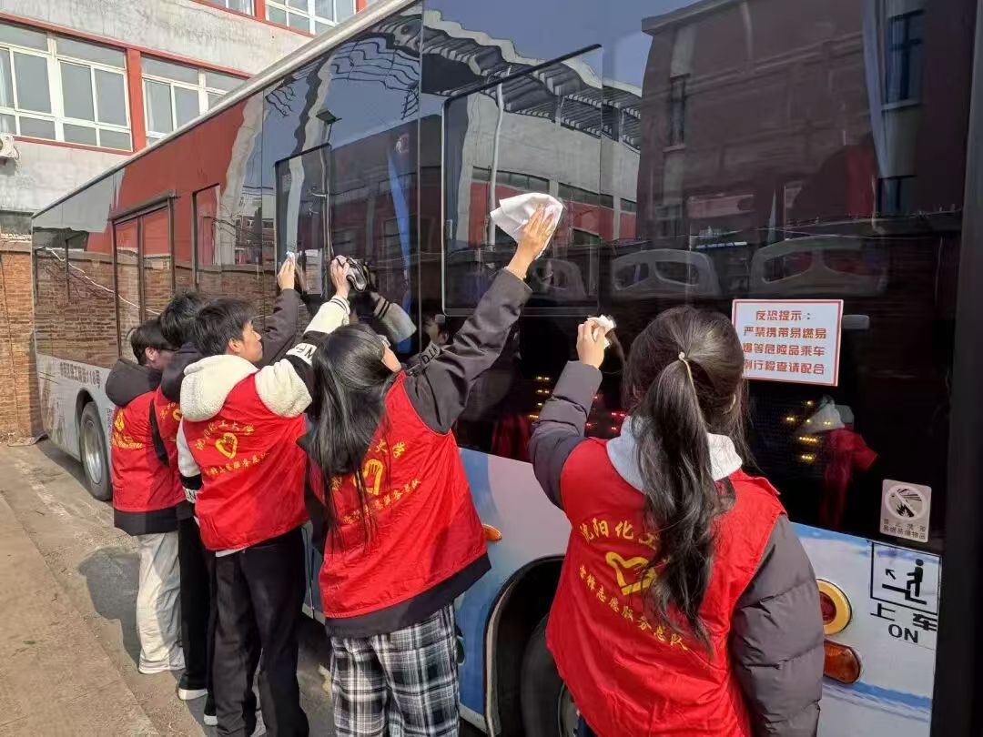 活动现场,学雷锋志愿服务总队的志愿者们热情高涨、分工明确,手持抹布、水桶等清洁工具,全身心投入到公交车清洁工作中。志愿者们细致擦拭车窗玻璃、车身外壳,认真清理车门扶手、座椅缝隙、车厢角落的灰尘与杂物,不放过任何一处卫生死角。从外观清洁到内部整理,从细节擦拭到整体美化,每一位志愿者都以认真负责的态度,用心擦亮公交车的每一处角落,让原本沾染灰尘的车辆焕然一新、窗明几净。