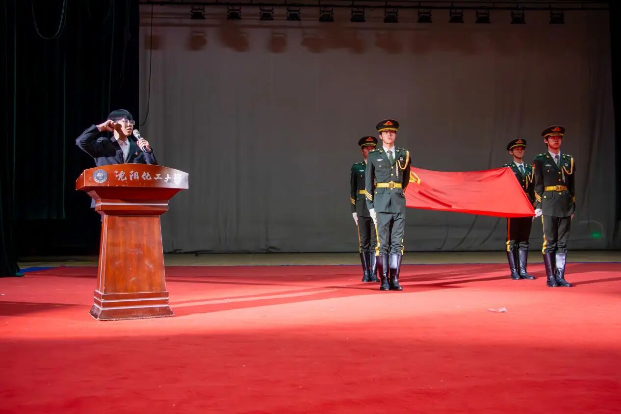 仪式在雄壮的国歌声中拉开帷幕,全体人员肃立齐唱国歌,激昂的旋律激荡着每位与会者的爱国情怀与使命担当。