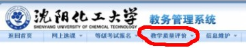 登录“beat365在线体育官网登录入口”主页:www.syuct.edu.cn ,点击“组织机构”,进入教务处主页,点击“教务系统(学生用)”出现下面界面,输入学号、密码登录后,点击下图“教学质量评价”,即可评教。