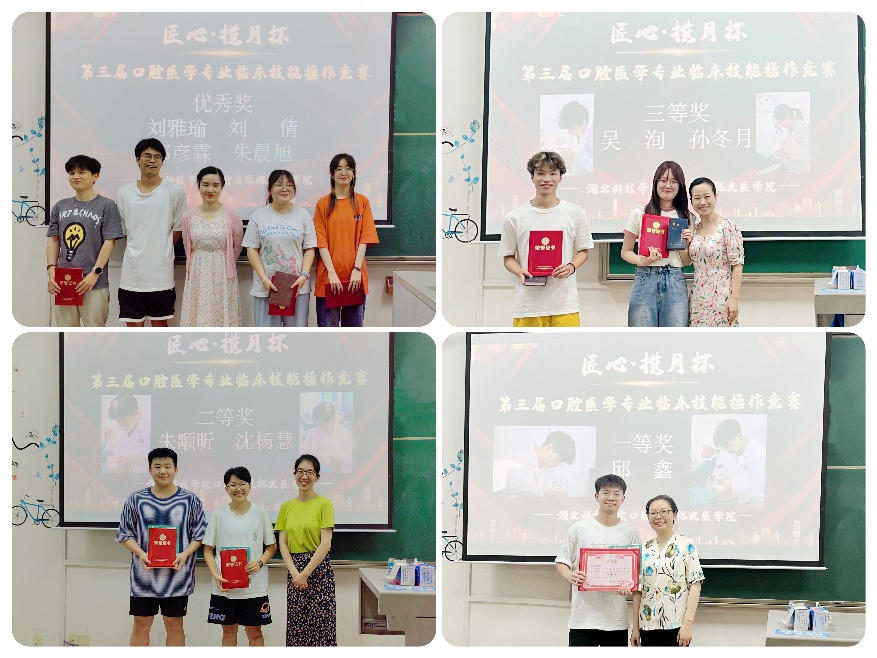 口腔医学教研室主任陈黄琴副教授、口腔修复教研室主任冯蕊老师、沈昕老师及20口本班主任王娜老师为获奖选手颁发奖状及奖品,对参加此次技能竞赛的同学们表示鼓励,对本次竞赛圆满完成表示祝贺,并祝愿湖科口腔学子在全国赛事上斩获佳绩,不负初心,砥砺前行,为母校争得荣誉。(审稿:黄玉婵)