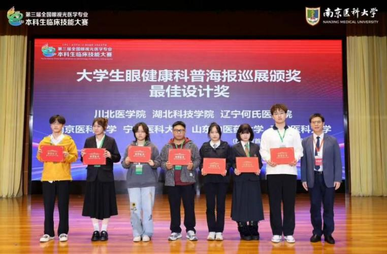 在赛事同期举办的大学生眼健康科普海报设计比赛中,由学院党委副书记程鹏带队、2024级张子乐同学展示的科普海报,凭借其独特的创意与专业的科普内涵,荣获“最佳设计奖”,同时开元官网大学生近视防控宣讲团的工作成果也获得了与会专家的高度认可。
