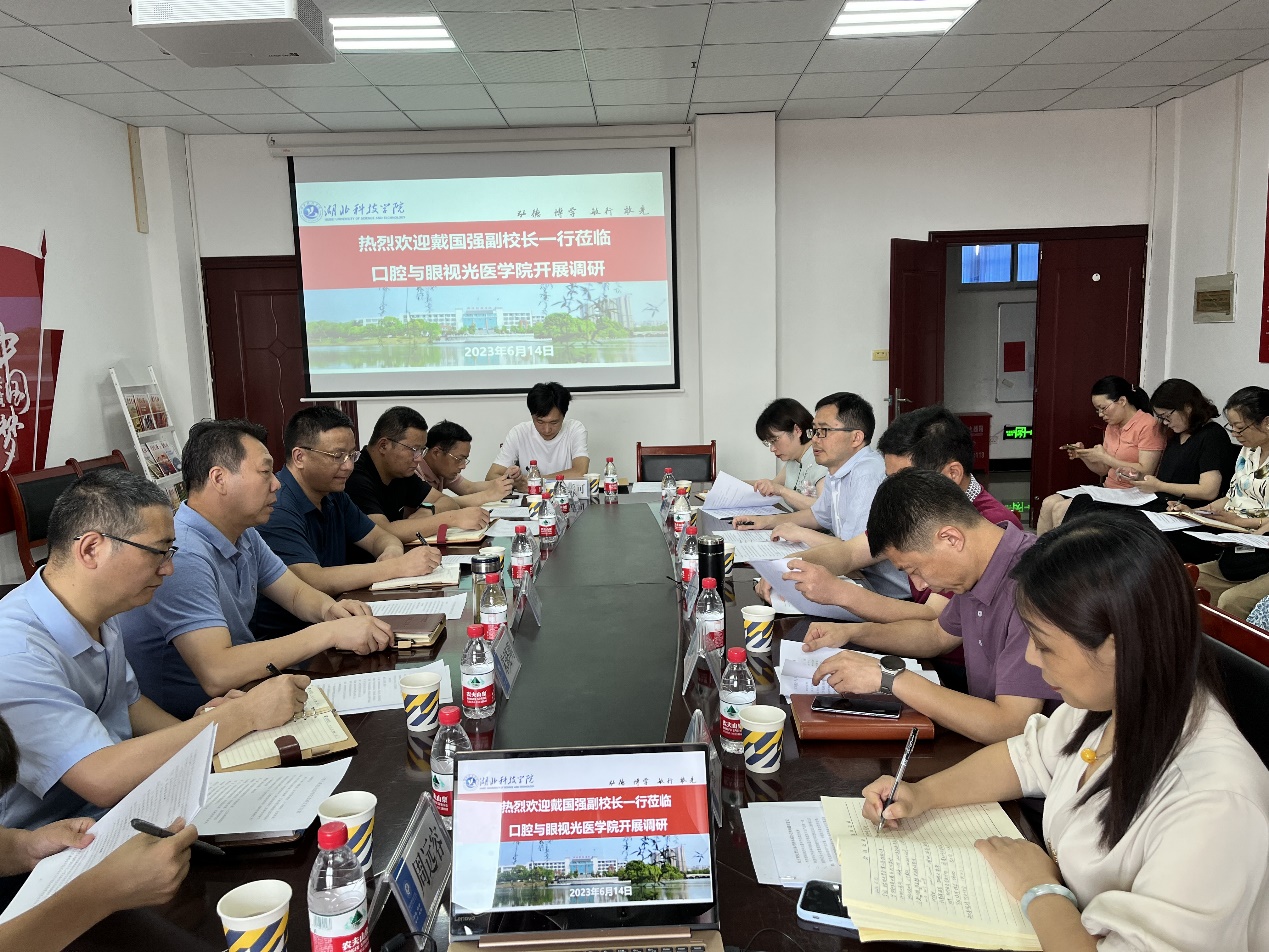 6月14日上午,校党委常委、副校长戴国强一行到开元集团官网入口开展主题教育调研——科技工作专题座谈会,为学院高质量发展问诊把脉。科学技术发展院副院长、综合处处长朱晓明、科学技术发展院副院长、自然科学处处长吴昭君、社会合作与校友工作处副处长钟良骥陪同,开元集团官网入口全体班子成员、各党支部书记和教师代表参加会议。