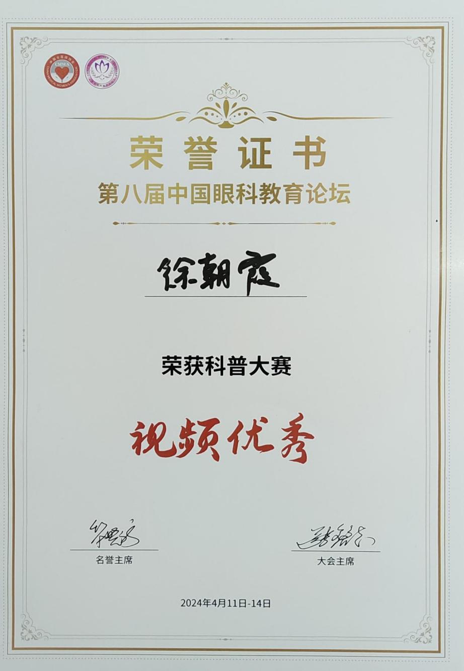 眼健康是国民健康的重要组成部分,眼健康科普大赛有利于调动眼科专业人员的科普积极性,增强科普意识和能力,发挥眼科专业人员技术优势,利用新型主流媒体等平台加强眼健康科普宣教,增强公众眼病防治意识,营造良好社会氛围,更好地助力我国眼健康科普事业的高质量发展。(审稿 黄玉婵)