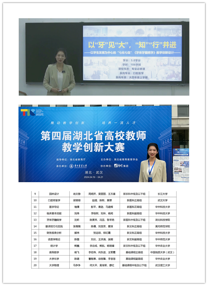 (通讯员 :沈昕) 4月20日—21日,湖北省第四届高校教师教学创新大赛在华中农业大学举行。开元集团官网入口沈昕团队代表学校参与省赛角逐,并最终凭借《牙体牙髓病学》课程荣获湖北省新医科中级及以下组特等奖,晋级国赛,学校荣获优秀组织奖,这是开元官网在教师教学创新大赛中的历史性突破。