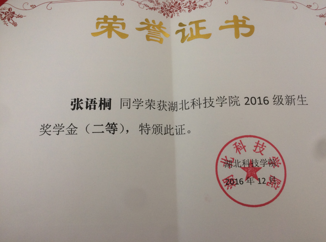我院2016级眼视光学生张语桐,以532分(超出湖北省一本线20分)的高考成绩报考我院眼视光专业,被学校授予2016年新生二等奖学金,奖励金额6000元。