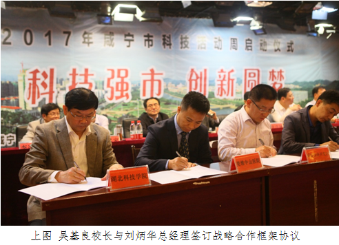 (通讯员佘同辉)4月28日上午,在学校学术报告厅举行的“201年咸宁市科技活动周启动仪式”上,吴基良校长代表学校、刘炳华总经理代表江西美维中山医院管理有限公司,签订了学校与江西美维中山医院管理有限公司战略合作框架协议,双方同意在学校附属口腔医院建设、学生实习与就业推荐等方面推进深入广泛合作。