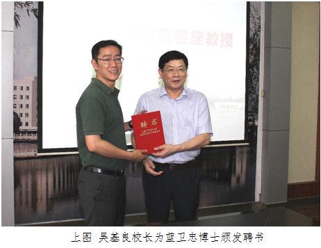 (通讯员 佘同辉)6月1日下午,学校隆重举行客座教授聘任仪式,聘任爱尔眼科医院集团李力总裁、蓝卫忠博士为开元集团网站客座教授,吴基良校长为李力总裁、蓝卫忠博士分别颁发了聘书。聘任仪式由钟儒刚副校长主持,爱尔眼科医院集团韩忠副总裁、杨智宽副总裁以及学校科研处李岱处长、五官医学院周燕红院长、范杉书记等参加。