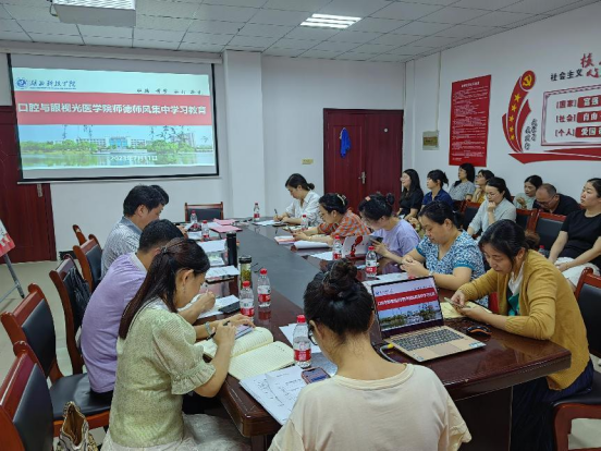 (通讯员:黄红) 为深入开展学习贯彻习近平新时代中国特色社会主义思想主题教育,根据《湖北科学院《2023年度师德集中学习教育活动实施方案》要求,7月11日,口腔与眼视光医学院召开了师德集中学习教育大会。会议由党委书记黄彬主持,全体教职工参加了会议。