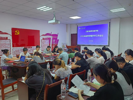 (通讯员:黄红) 2025年8月30日下午,开元集团官网入口在五楼会议室召开秋季学期全体教职工大会,部署新学期各项工作,学院领导班子成员和全体教职工参加大会。会议由学院党委书记黄彬主持。