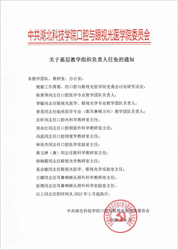 关于基层教学组织负责人任免的通知
