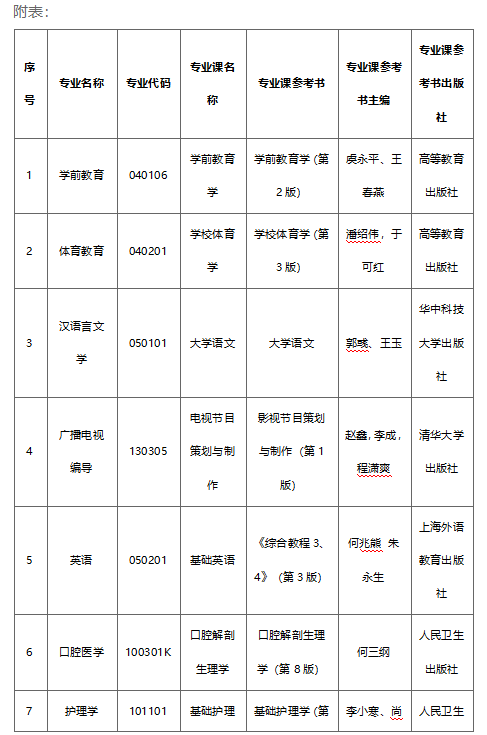 各专业考试科目除湖北省统考科目外,还需要进行专业课科目考试,具体科目及参考书籍信息参见附表。退役大学生士兵考试科目按照湖北省教育厅相关工作安排实施,详细内容请参见开元官网2025年普通专升本招生简章。