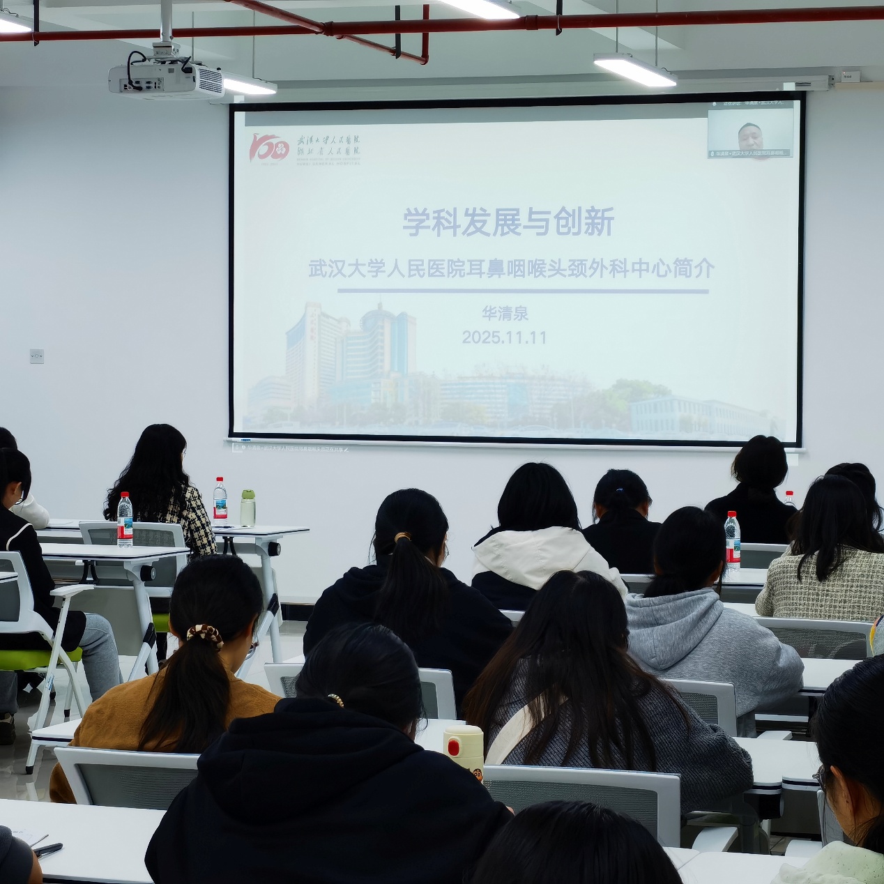 为谋划学院发展新蓝图,启迪学科建设新思路,2025年11月11日晚,我院特邀武汉大学人民医院眼耳鼻喉医院常务副院长、耳鼻咽喉-头颈外科中心主任华清泉教授,通过线上平台为全院师生带来一场题为《学科发展与创新》的高端学术讲座。本次讲座由我院院长周燕红教授亲自主持。